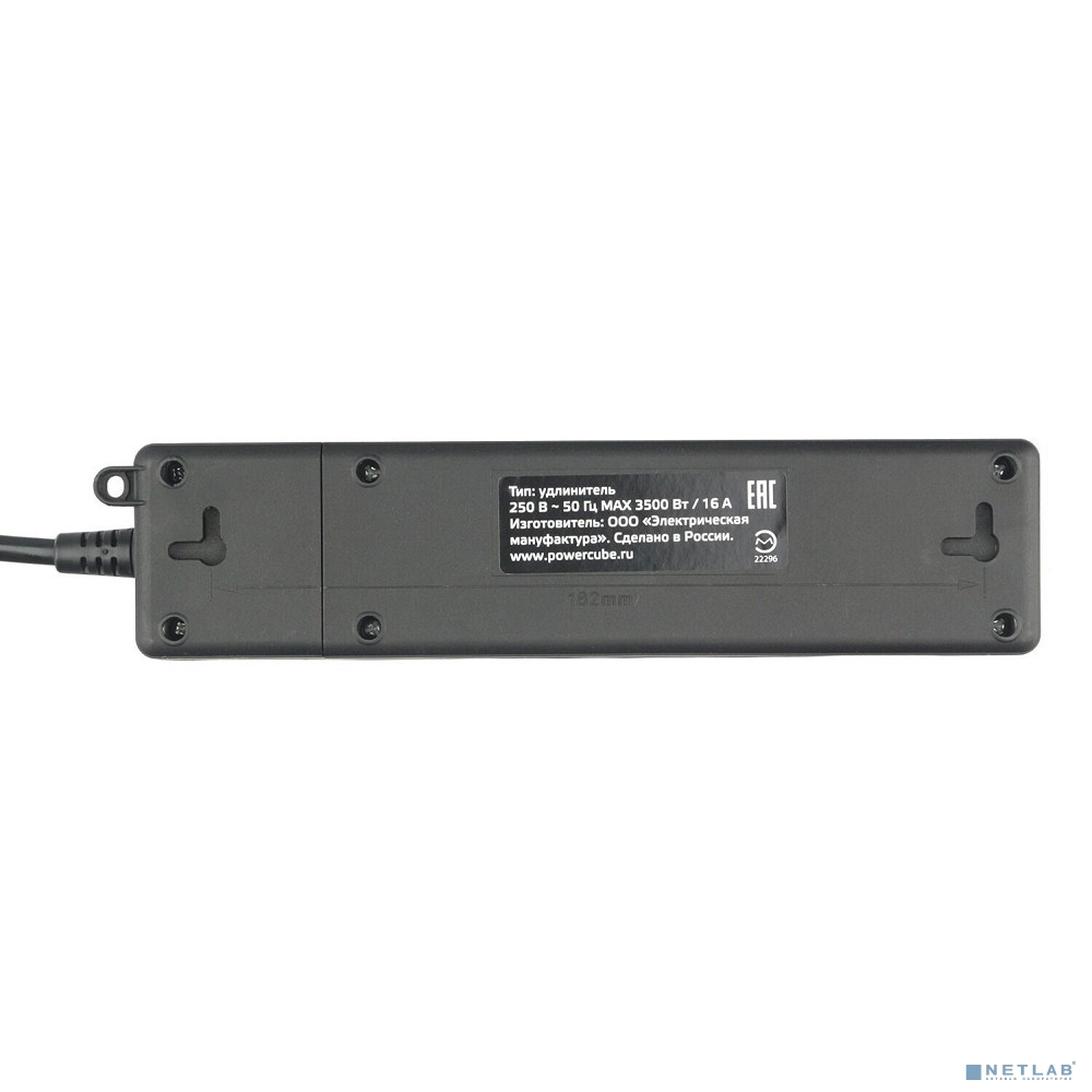 PowerCube Бытовой удлинитель (PC-5B-2M) 2р с/з вык.,3USB, 3500 Вт, 16А, 1.9 м, 3*1,0 (черный)