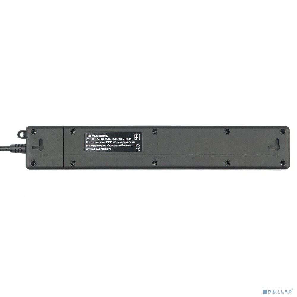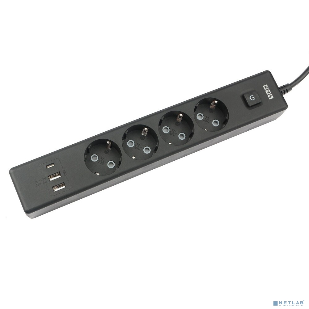 PowerCube Бытовой удлинитель (PC-7B-2M) 4р с/з вык.,3USB, 3500 Вт, 16А, 1.9 м, 3*1,0 (черный)