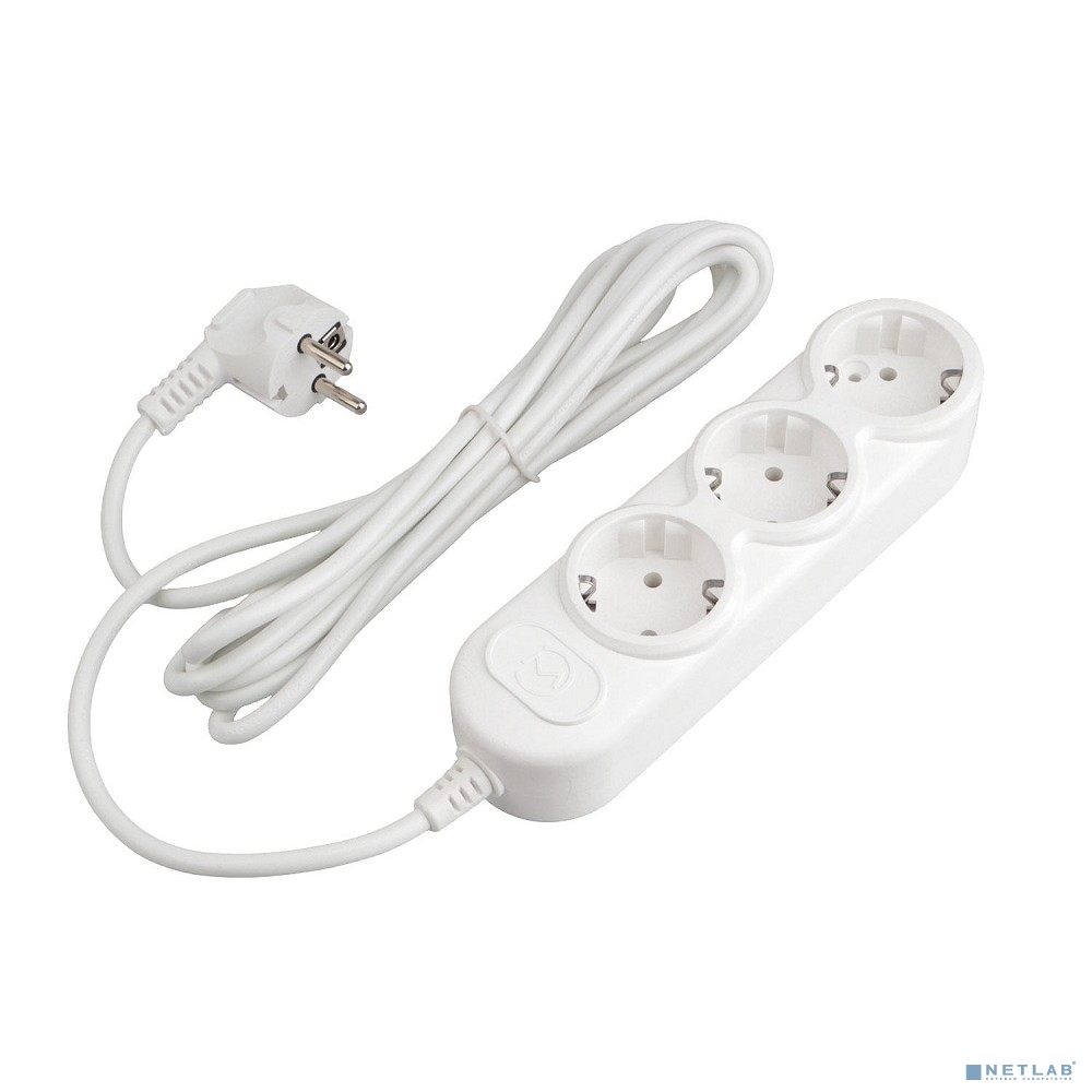 PowerCube Удлинитель (PC-3-3М) 3.0м, 3 розетки, 10А, без выключателя, белый