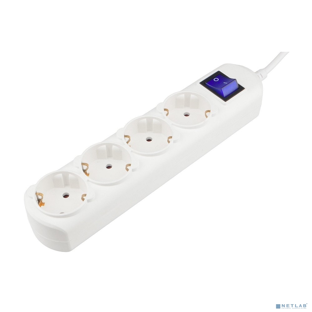 PowerCube Удлинитель (PC-4B-7M) 7.0м, 4 розетки, 10А, с/з, с выключателем, белый