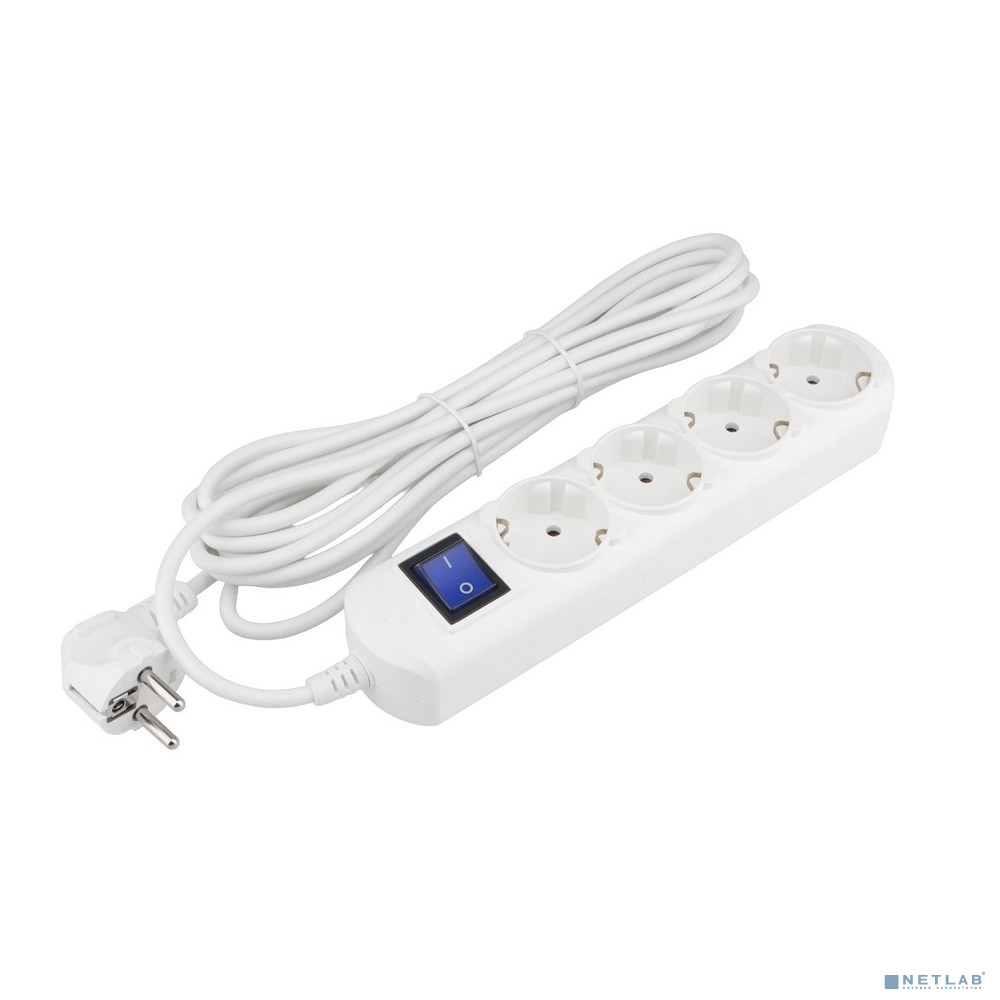 PowerCube Удлинитель (PC-5B-5M) 5.0м, 4 розетки, 16А, с/з, с выключателем, белый