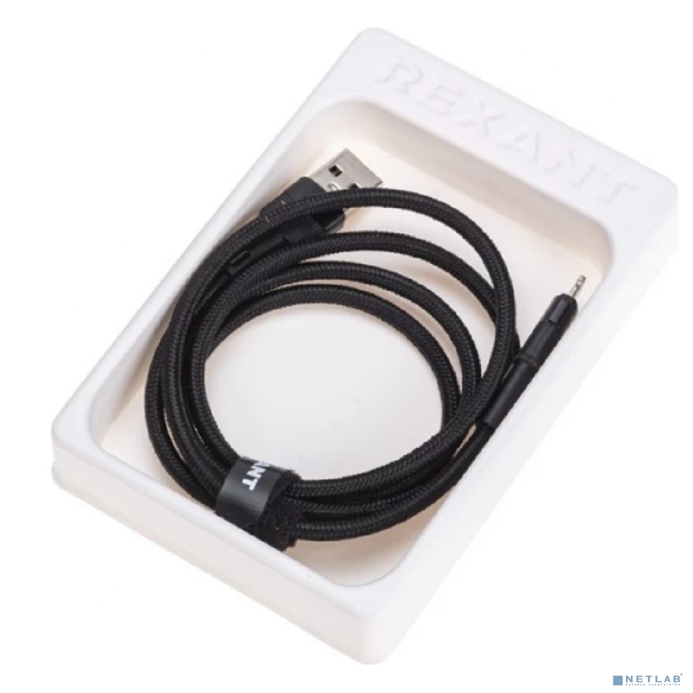 Rexant (18-7060) Кабель USB-A – Lightning для Apple, 2,4А, 1м, в черной нейлоновой оплетке