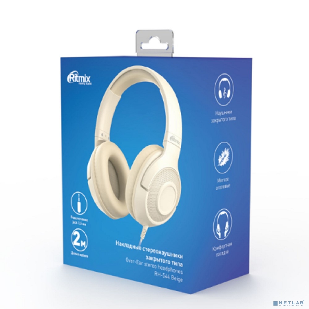 RITMIX RH-544 Beige {Наушники. 40 мм, 20-20000 Гц, 32 Ом, 99 дБ ± 3 дБ, 3.5мм, 2м}