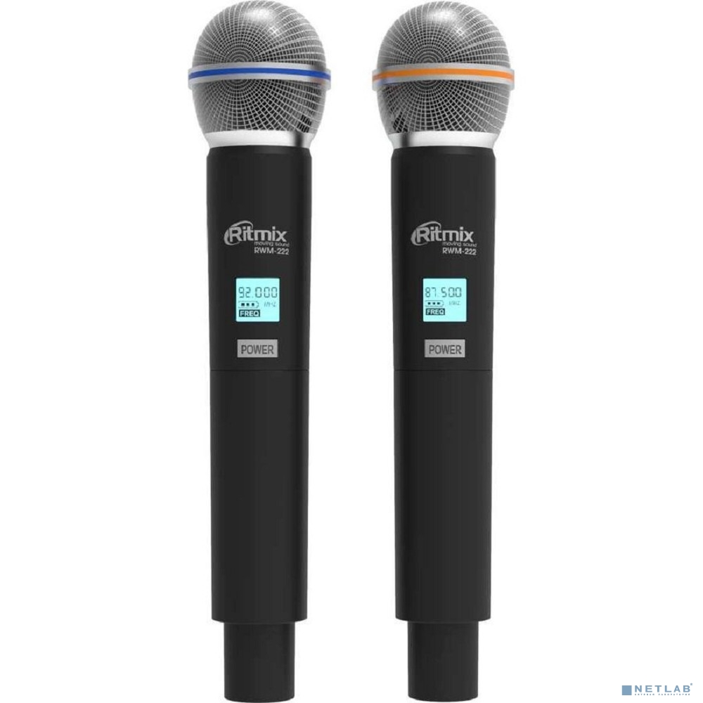 RITMIX RWM-222 Black {2 микрофона: 66 МГц - 74 Мгц, 87.5 МГц - 92 МГц; раб. част.: 40 Гц - 18 000 Гц;чувств.: -105 дБ +/-3 дБ}