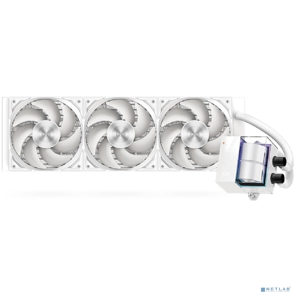 Система охлаждения/ PCCooler DS360 WH (310W, 360mm, LED temp., White, ARGB Pump/ Fans: 3x120mm, 86.73CFM, 28dBA, 2200RPM/ Pump height 67mm, 28dBA, 3200RPM, Rad thickness 27mm/ S: 1851, 1700, 1200, 20X