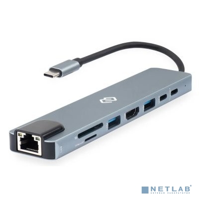Type-C док-станция DIGMA, 8 портов (HDMI (4K@30Hz, FULL HD@60Hz) , USB-C PD 87W, USB-C, SD/MicroSD, Lan 100mb, 1xUSB 3.0, 1xUSB 2.0