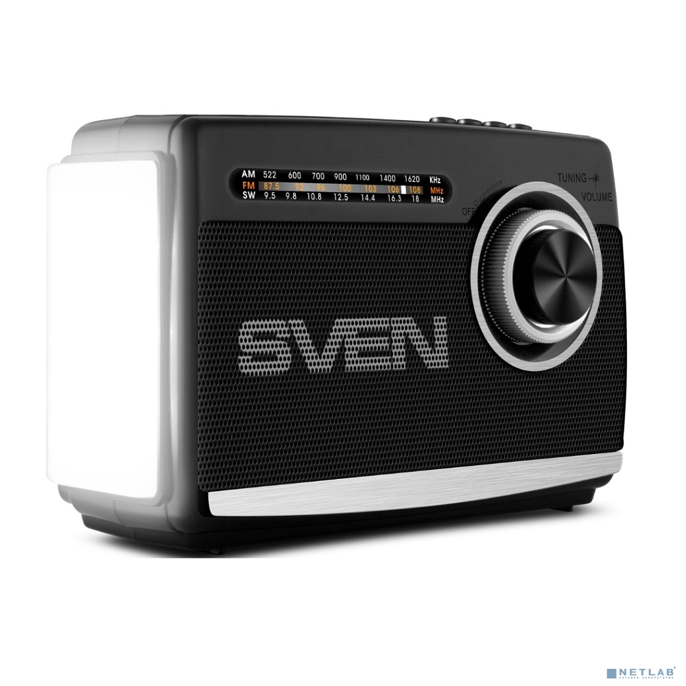 SVEN АС SRP-155, чёрный (3 Вт, Bluetooth, FM/AM/SW, USB, microSD, фонарь, встроенный аккумулятор)