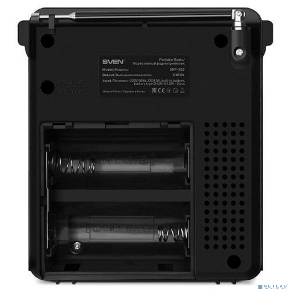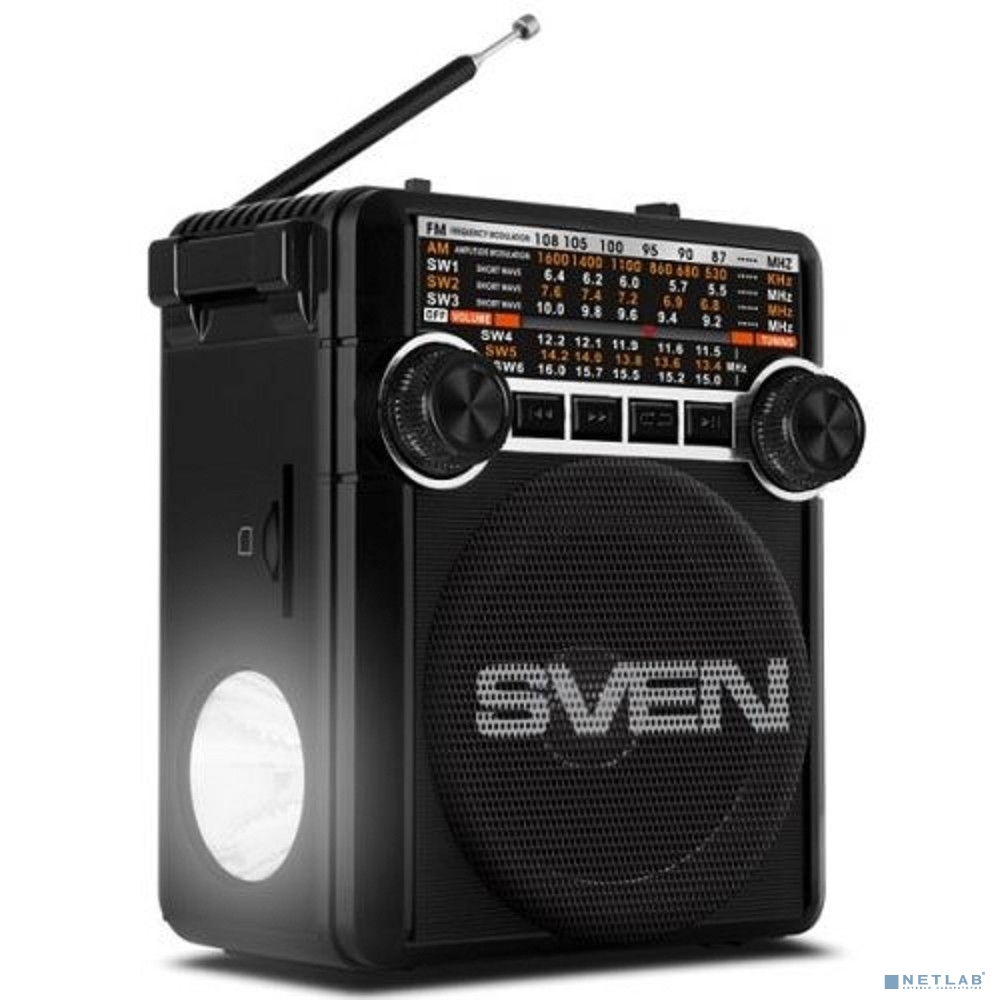 SVEN SRP-355, черный, радиоприемник (мощность 3 Вт (RMS), FM/AM/SW, USB, SD/microSD, фонарь, встроенный аккумулятор)