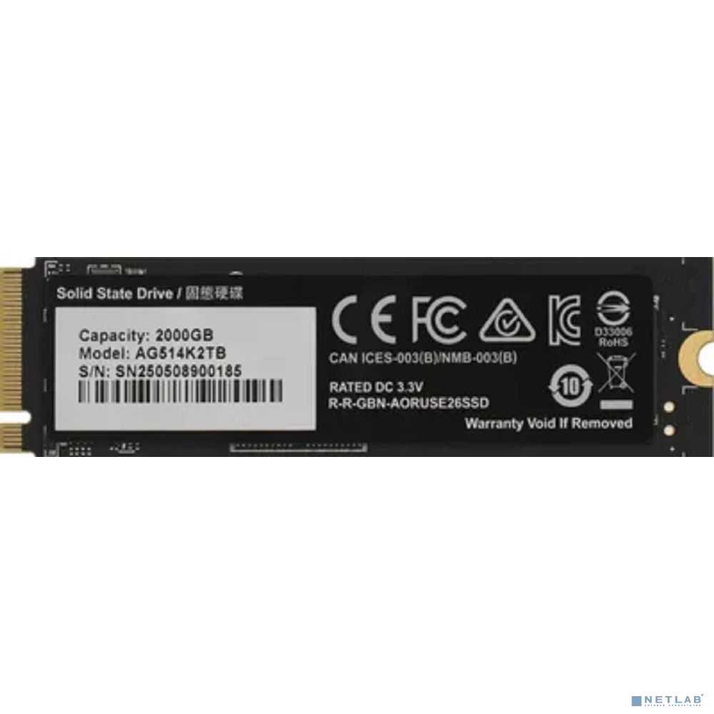 Твердотельный накопитель SSD Gigabyte 2TB M.2 2280 AORUS Gen5 14000 AG514K2TB PCI-Express 5.0x4, NVMe 2.0, 3D TLC NAND, 1400TBW