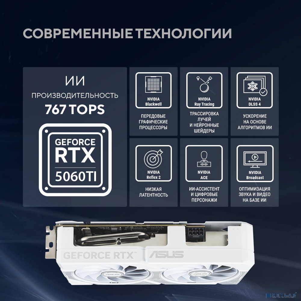 Видеокарта ASUS GeForce RTX5060TI 8Gb DDR7 128 bit 3*DP/HDMI 2 FAN (DUAL-RTX5060TI-O8G-WHITE) RTL
