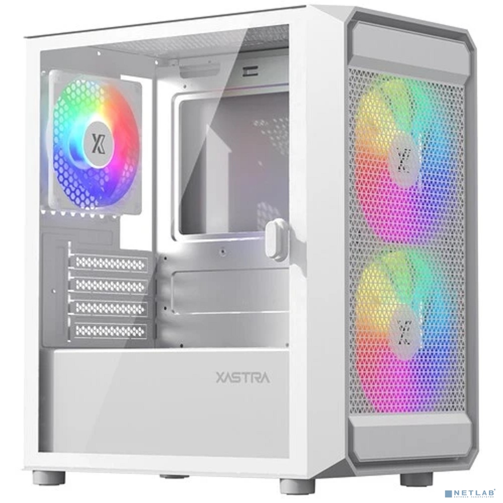 XASTRA Корпус A303M 3ARGB White mATX/Mesh/ tempered glass / 2x140mm + 1x120mm ARGB PWM fans/ Door/ A303M-2FC14A-1FC12A-D-WH