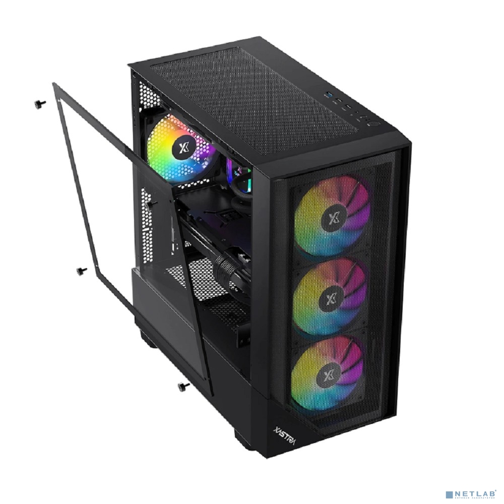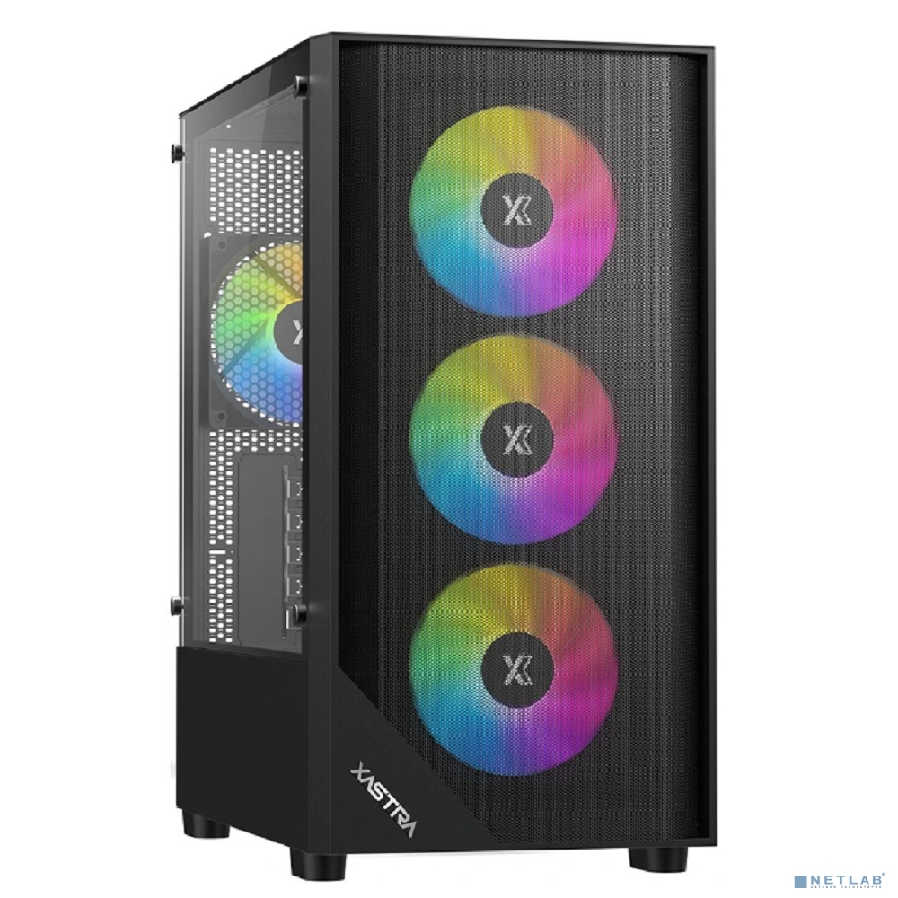 XASTRA Корпус A401M 4FRGB Black mATX/Mesh/half size TG / 4x120mm FRGB fans/ A401M-4FC12F-BK