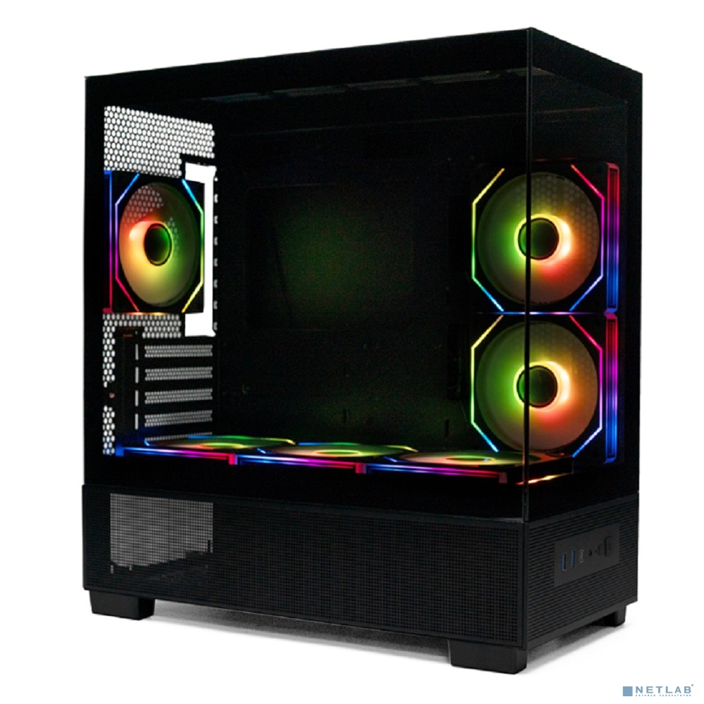 XASTRA Корпус Q500M 6ARGB-C10-UC Black mATX/Aquarium/Screewless/ 6x120mm ARGB PWM FM fans/Argb+PWM HUB 10port/ Type-C/ Q500M-6FM12A-C10-UC